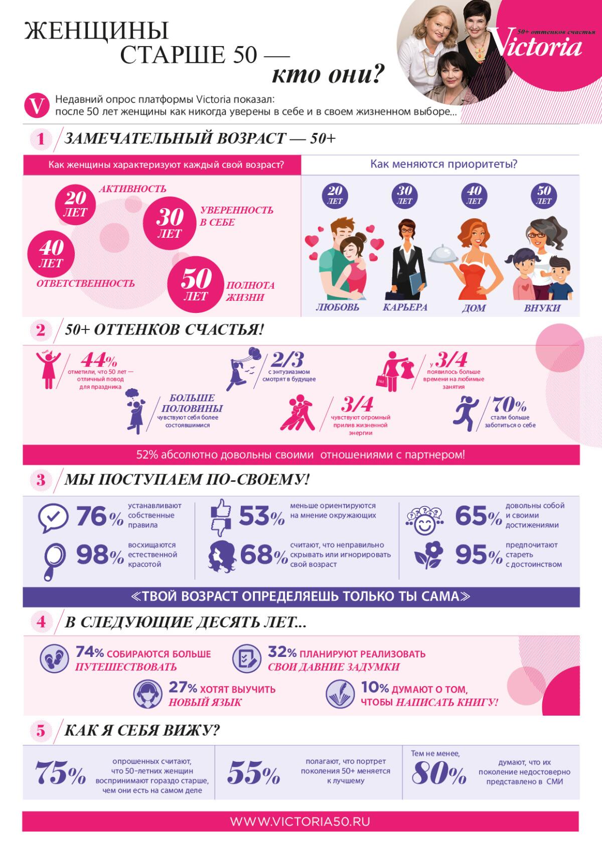 Проект Victoria отвечает общемировым и российским демографическим тенденциям, когда на свой Олимп восходит новое поколение женщин в возрасте 50+, которое гордится своими достижениями и опытом, а возраст воспринимает как еще одно подтверждение на право жить яркой, насыщенной жизнью.