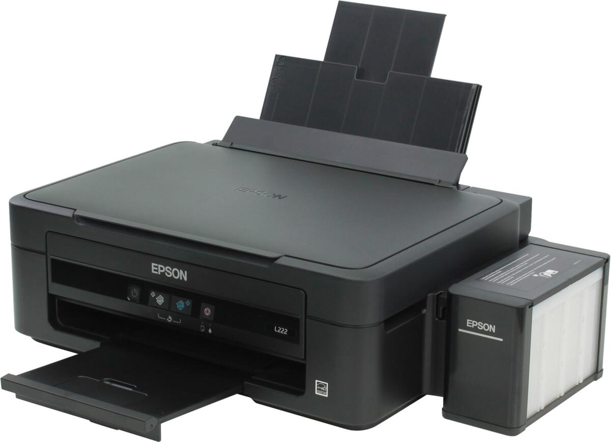 Модель L222. Многофункциональный Л222 включает в свои возможности функции сканера, принтера и ксерокса. 4-цветный аппарат отлично подойдет для домашнего пользования. Вы сможете отпечатывать высококачественные фотографии с 5760×1440 точек на дюйм. Скорость распечатки составляет 3,5−7 страниц в минуту. МФУ имеет относительно небольшие габариты и работает с материалами плотностью 64−255 г/м 2.
