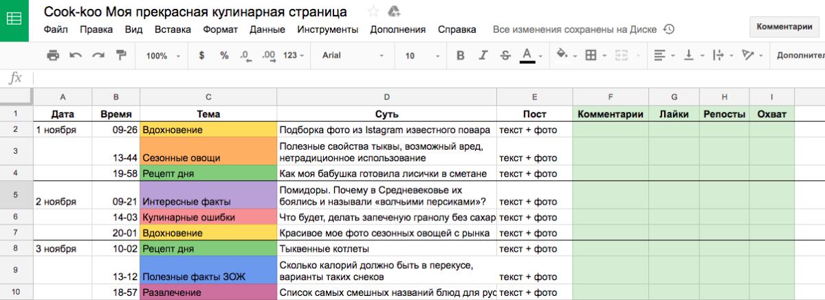 Люди подсознательно больше доверяют тем, кто последователен. Не обязательно публиковать посты три раза в день ежедневно, но ритм и постоянство очень важны. Составьте в Google Таблицах общий план публикаций на полгода, более подробный — на ближайший месяц, и максимально детальный — на эту неделю. Вдохновение — штука ненадежная, подстрахуйте себя.