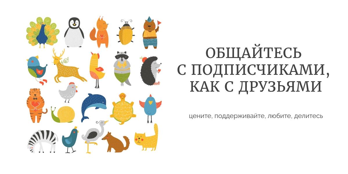 Страница в соцсети — не стенд с газетами «Правда» и «Известия» в 70-х. Общайтесь с подписчиками в комментариях, устраивайте флешмобы со своим авторским хэштегом, делитесь фотографиями и цитатами пользователей (со ссылкой на них, конечно) и быстро отвечайте на личные сообщения.