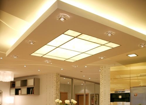 Учитывая конструктивную пластичность гипсокартона, из него можно создавать не только простые, но и сложные, фигурные, многоуровневые поверхности. Потолок в дальнейшем покрывают любыми глянцевыми, матовыми, цветными, фактурными отделочными материалами.