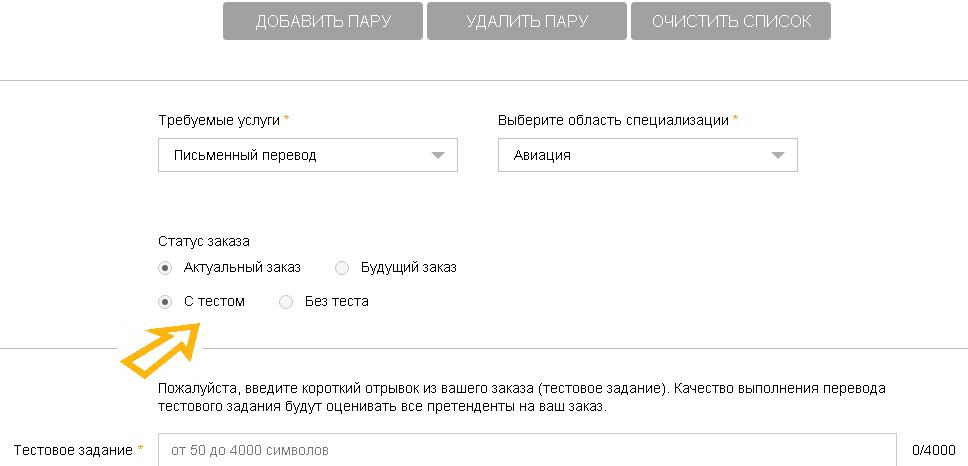 Во-первых, заказчик может по желанию провести предварительное тестирование кандидатов на выполнение заказа. Для этого в системе необходимо зарегистрироваться в качестве заказчика и перейти на страницу создания заказа.
