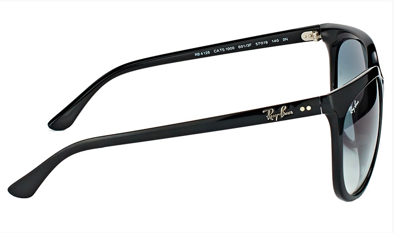 - На левой дужке очков — той, которая будет прижиматься к левому виску, написана информация о линзах, степени затемнения, номер цвета и название модели. На правой дужке расположены логотип, страна-производитель и знак качества. Сравните номера модели с оригинальным номером на сайте Ray-Ban.com — на фейковых очках часто напутаны номера и в каталоге на сайте такого номера не будет. Если вы покупаете оригинал, его номер всегда есть на сайте производителя.