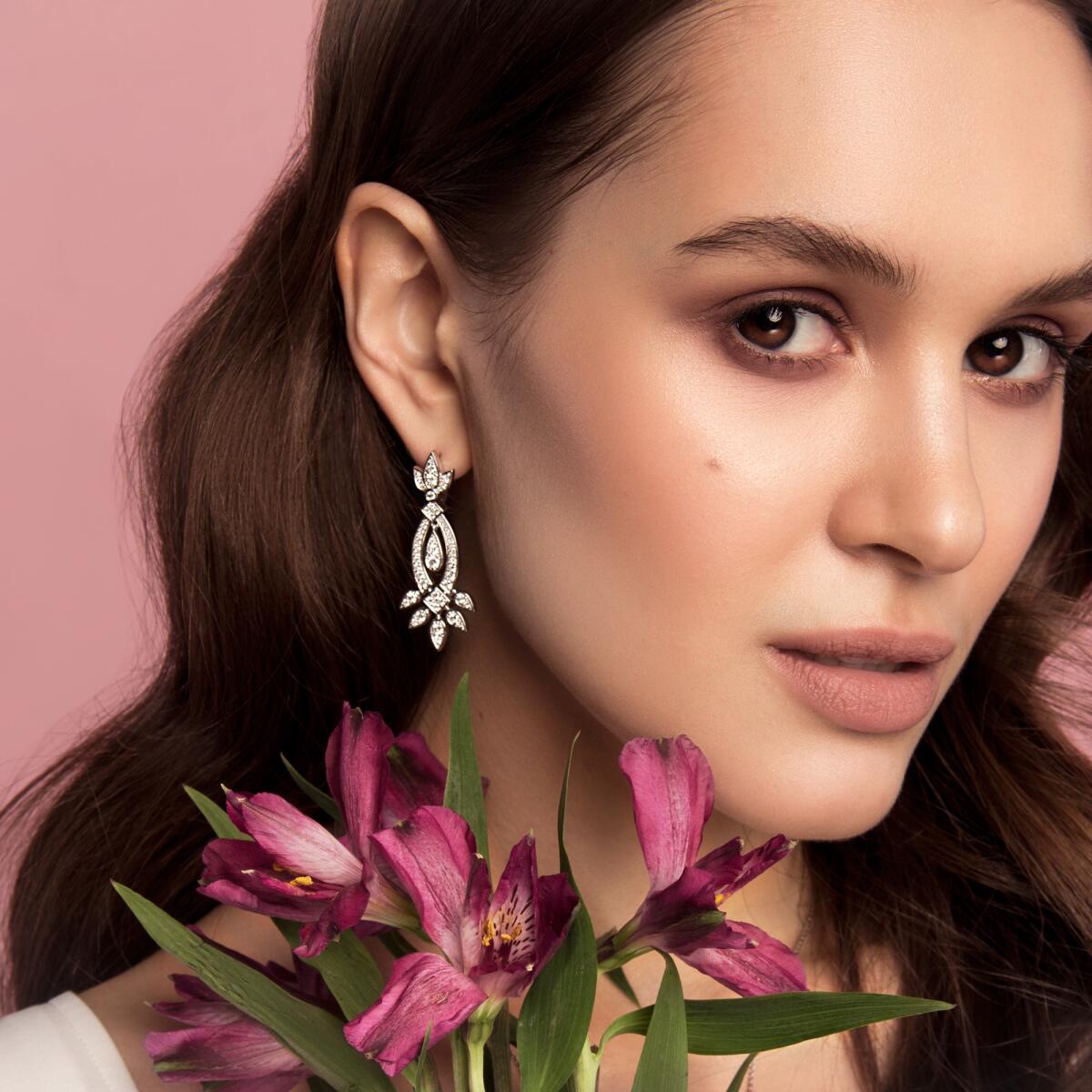 Аккуратные серьги, обнимающие мочку уха, стройные ряды бриллиантов, глянцевые поверхности. Глядя на эти серьги, сложно сказать, сколько лет или веков назад придуман этот дизайн. Быть может, подобные серьги носила ваша бабушка или дамы при французском дворе? Как знать.