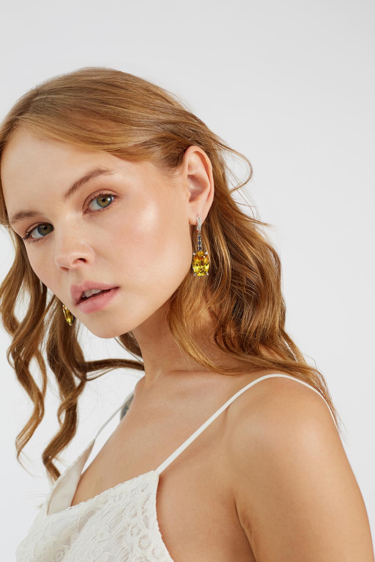 Соцветие драгоценных и полудрагоценных камней в модных серьгах 2019 впечатлит даже восточную царевну. Желтые бриллианты, изумруды, рубины, сапфиры, топазы — это лишь начало внушительного списка роскошных сверкающих камней.