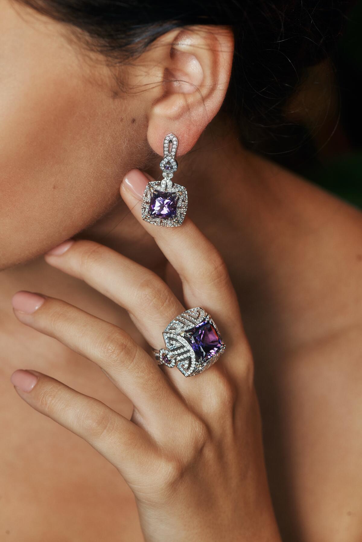 Опираясь на тренды, ювелиры все же предлагают использовать правило трех: не более трех цветов в одном украшении. К примеру: желтое золото сережки, центральный зеленый изумруд и россыпь белых бриллиантов в окантовке.