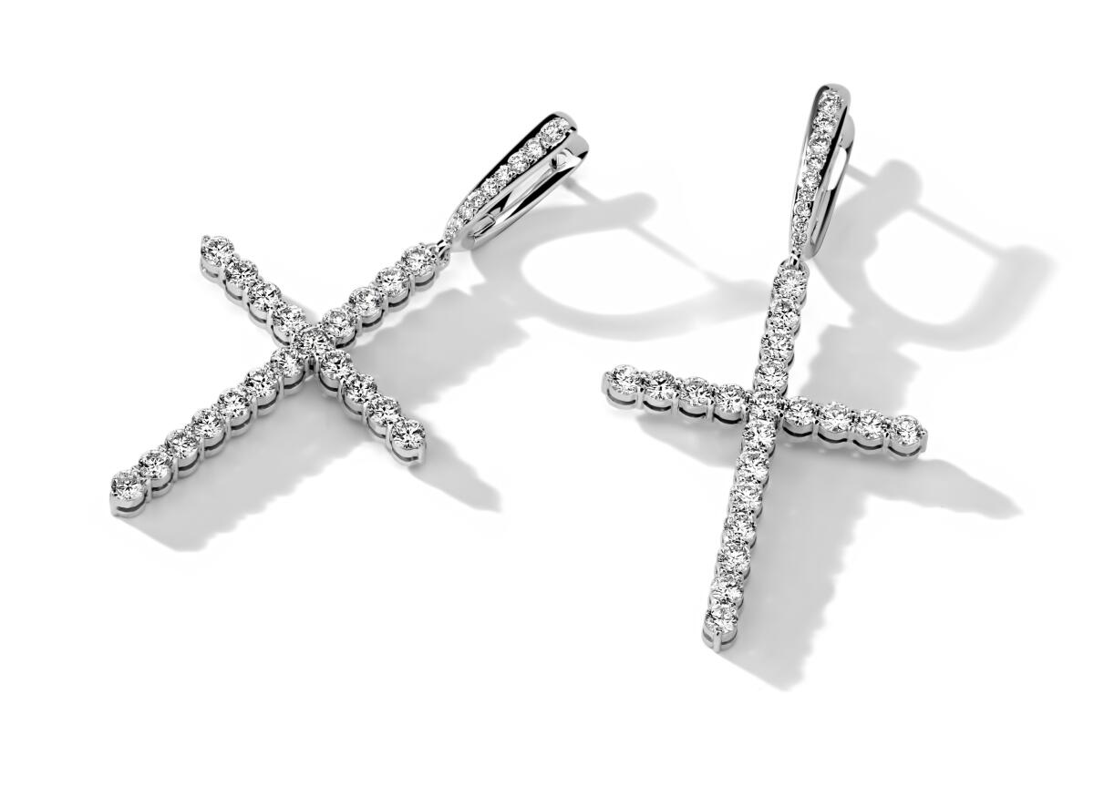 «Атеизм — моя религия. Однако я верю, что за спиной у меня есть крылья, а какая-то невиданная сила оберегает». Стильные серьги-кресты, инкрустированные чистой воды бриллиантами, станут идеальным дополнением образа.