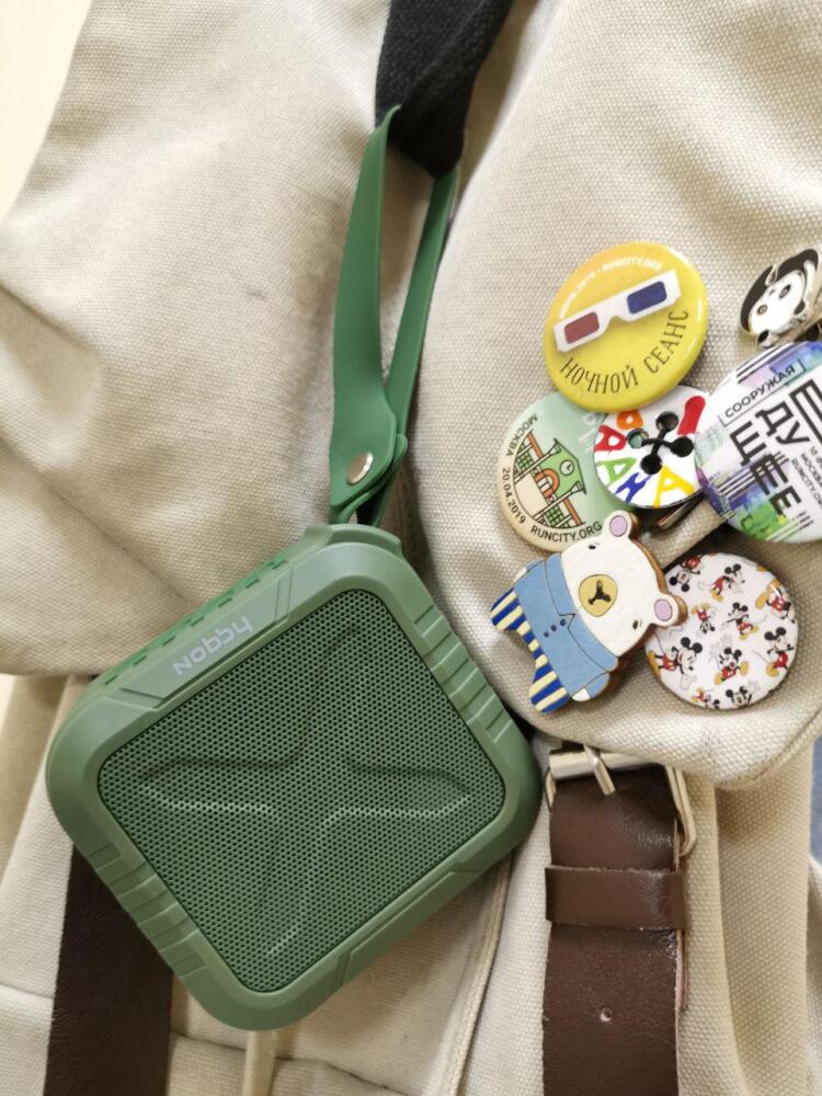Вместе с повербанками купил в магазине небольшую портативную Bluetooth-колонку Nobby Comfort Picnic. Знаете, НЕ пожалел! Она прочная, пережила пару неприятных падений. Сама крохотная, но звук такой, что всей поляне слышно. С этим связан ещё один лайфхак: если идёте группой в лес, можно цапнуть эту колоночку за удобную петельку и потащить с собой. Тогда вас будет всё время слышно и меньше риск потеряться. На прогулку заряда точно хватит, она без подзарядки играет часов десять.
