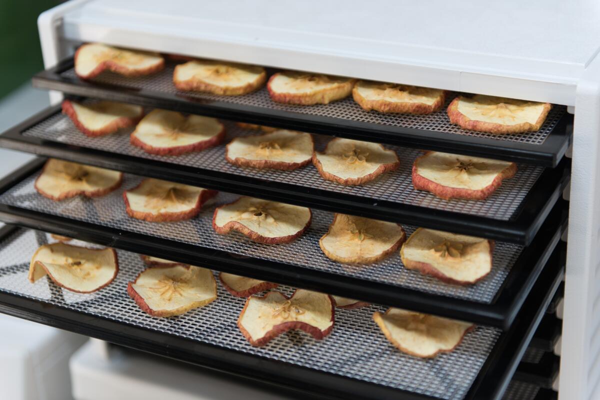 Кусочки продуктов стоит пару раз перевернуть во время сушения — так они приготовятся равномернее.