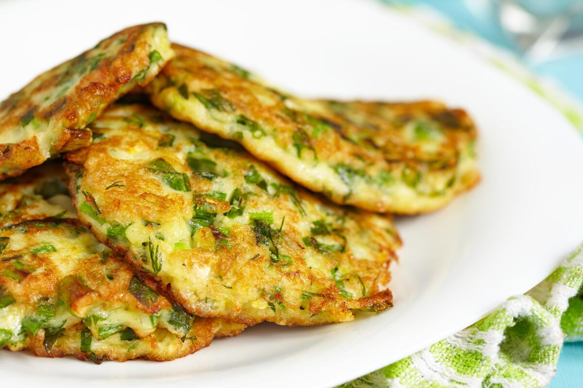 И еще одно блюдо с зеленым луком — оладьи. Их неплохо подавать с йогуртом или сметаной.