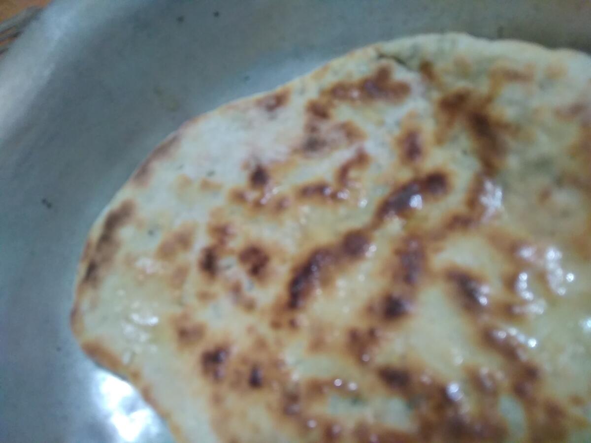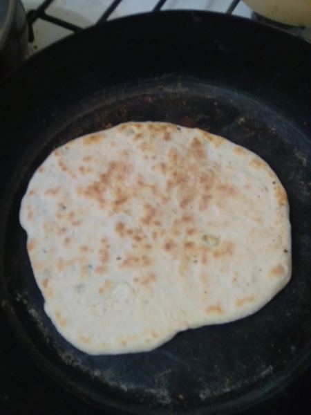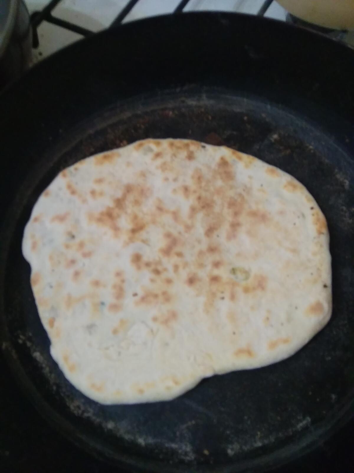 Поэтому выкладываем лепешку на разогретую сковороду и накрываем крышкой, если хочется более быстрого результата. Жарить до румяной корочки с двух сторон.