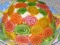 Бисквитный торт, украшенный белковым кремом и мармеладками!