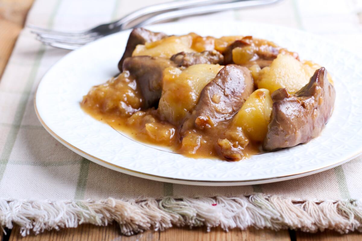 Яблоко для соуса нужно взять кисло-сладкое, именно такой вкус плода подчеркнет нежность куриной печени.