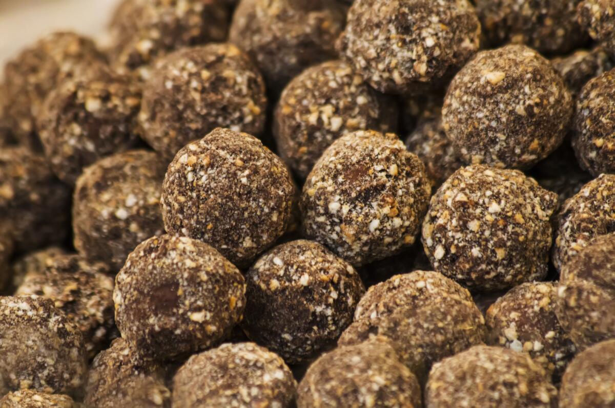 Обваливать можно и в ореховой смеси, предварительно пропущенной через кофемолку, и в порошке какао, и в кукурузных хлопьях, и в мелких семечках (например, чиа, мака, кунжута). Чуточку фантазии — и каждый раз секрет конфет будет все более ускользающим, а вкус неизменно меняться.