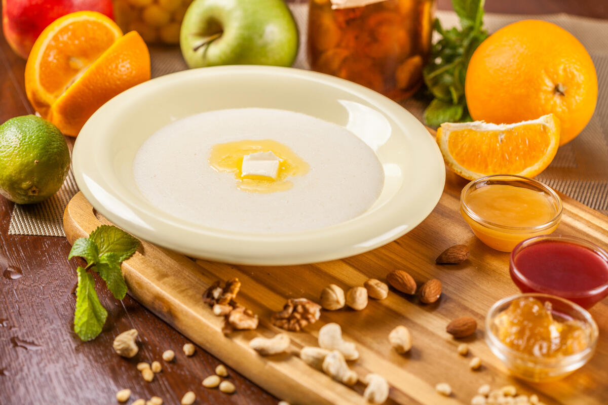 Чтобы приготовить молочную кашу «Здоровый завтрак», потребуется запастись набором продуктов, состоящим из: