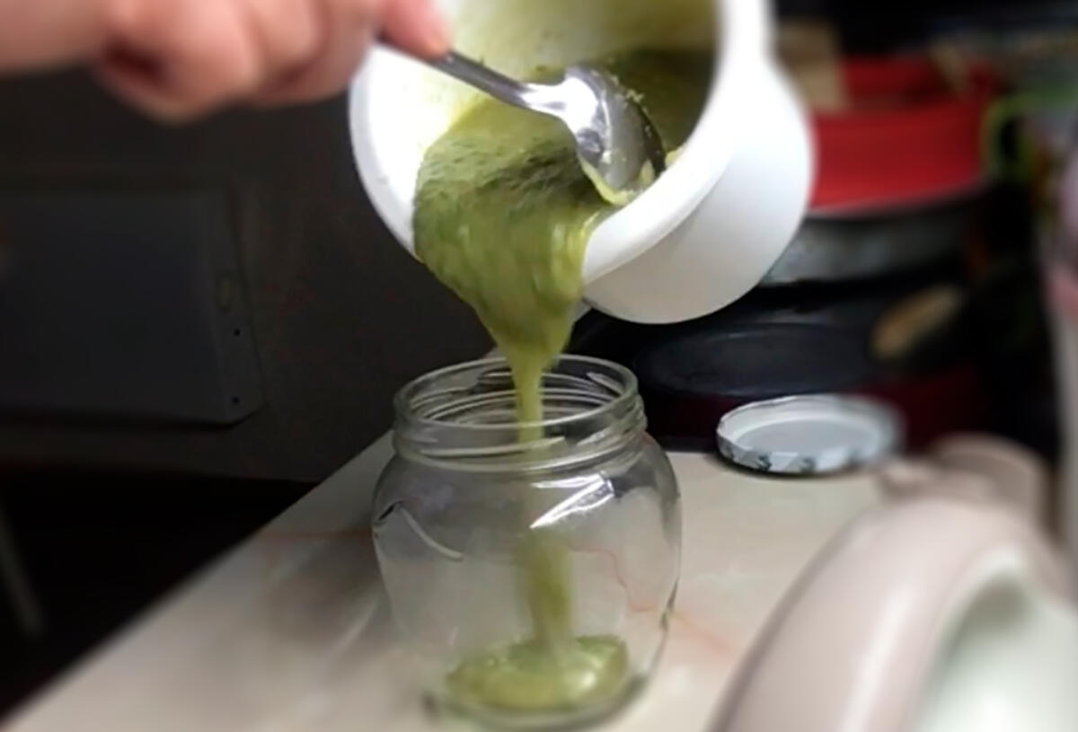 Для одной банки варенья объемом 0,55 литра необходимо взять 600−650 граммов фейхоа и три столовых ложки (с горкой) мёда. Любителям более сладкого варенья количество мёда можно увеличить.