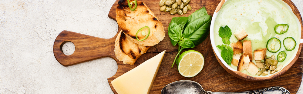 С каждым ломтиком поступают так: намазывают его растопленным маслом с одной стороны, а затем обильно посыпают сырной стружкой. Гренки выкладывают на противень и отправляют в духовку на 5 минут (температура +200 °C). Подают их горячими, присыпав листочками базилика.