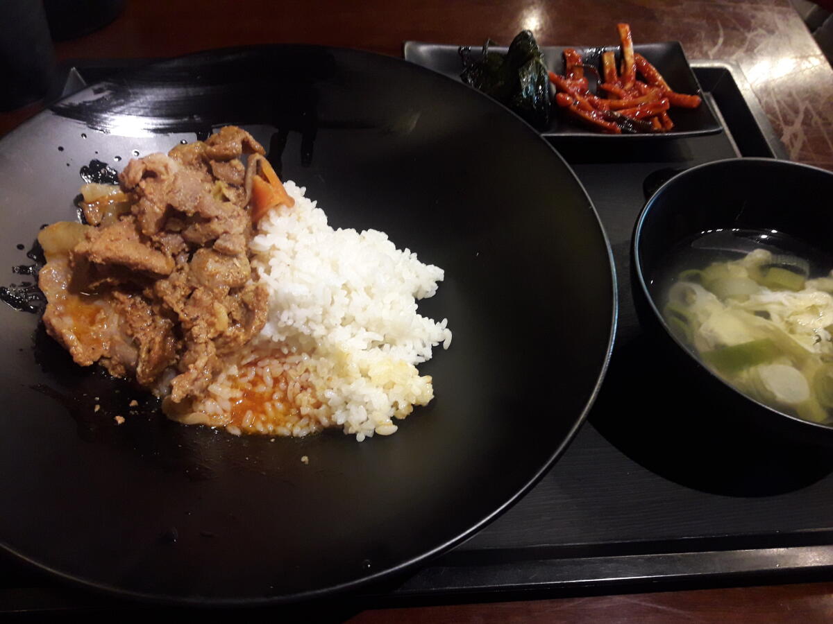 Хотя, на первый взгляд, блюдо выглядело вполне безобидно: сваренный рис, тушеная свинина, прозрачный супчик с большим количеством лука и что-то маринованное.