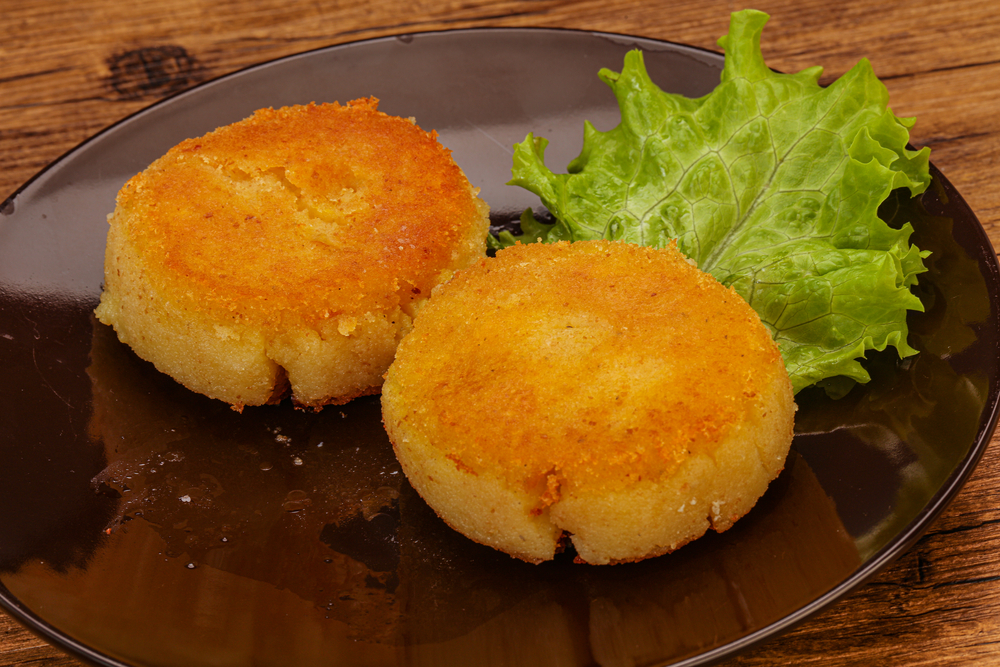 - В центр лепешки выложите немного грибной начинки. Защипните края и придайте заготовке из картофельного теста форму котлетки.