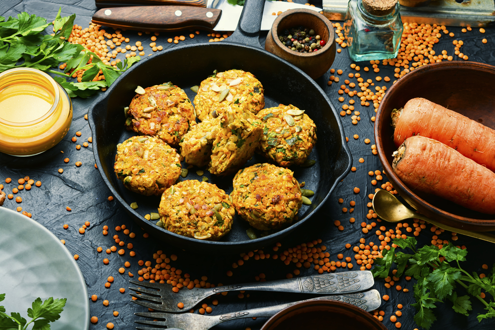 7. Пожарьте чечевичные котлетки привычным способом до образования хрустящей золотистой корочки.