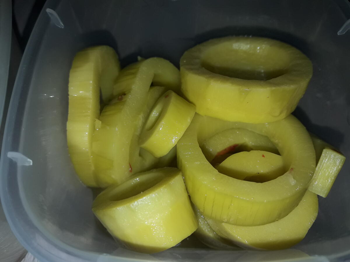 Выглядит маринованный бамбук забавно, интересно. Позже я узнала, что в кухне Абхазии есть подобное блюдо, правда, корейский вариант более острый и насыщенный по вкусу из-за специй. Но это очень вкусная закуска, поэтому, если вам выпадет возможность попробовать, обязательно попробуйте.