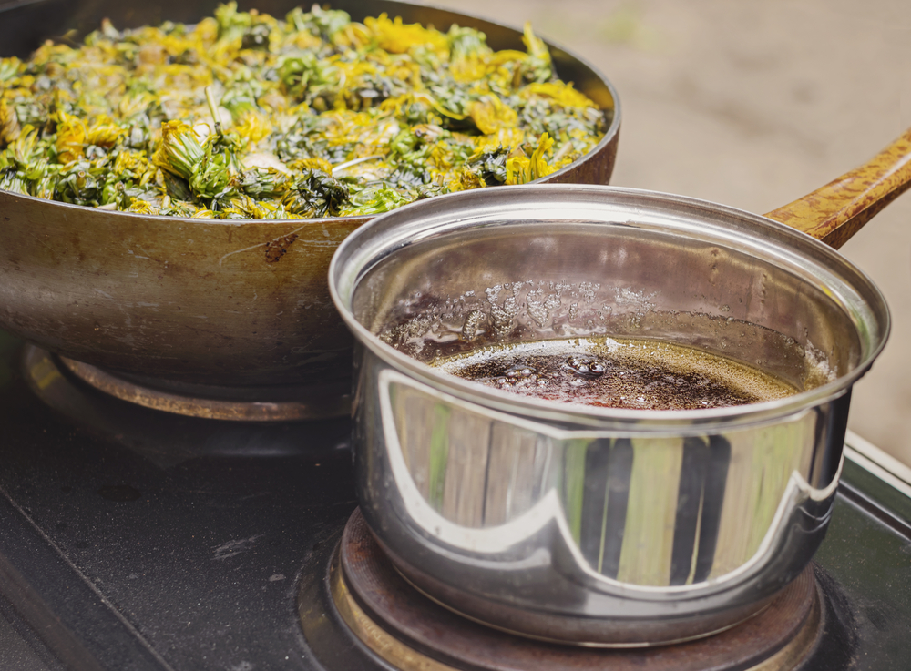 Раскрывшиеся желтые бутоны засыпьте в кастрюлю, залейте их водой и поставьте емкость на огонь. Мыть цветы не нужно. В противном случае будет смыта пыльца с нектаром, а значит, утрачена часть полезных свойств растительного сырья.