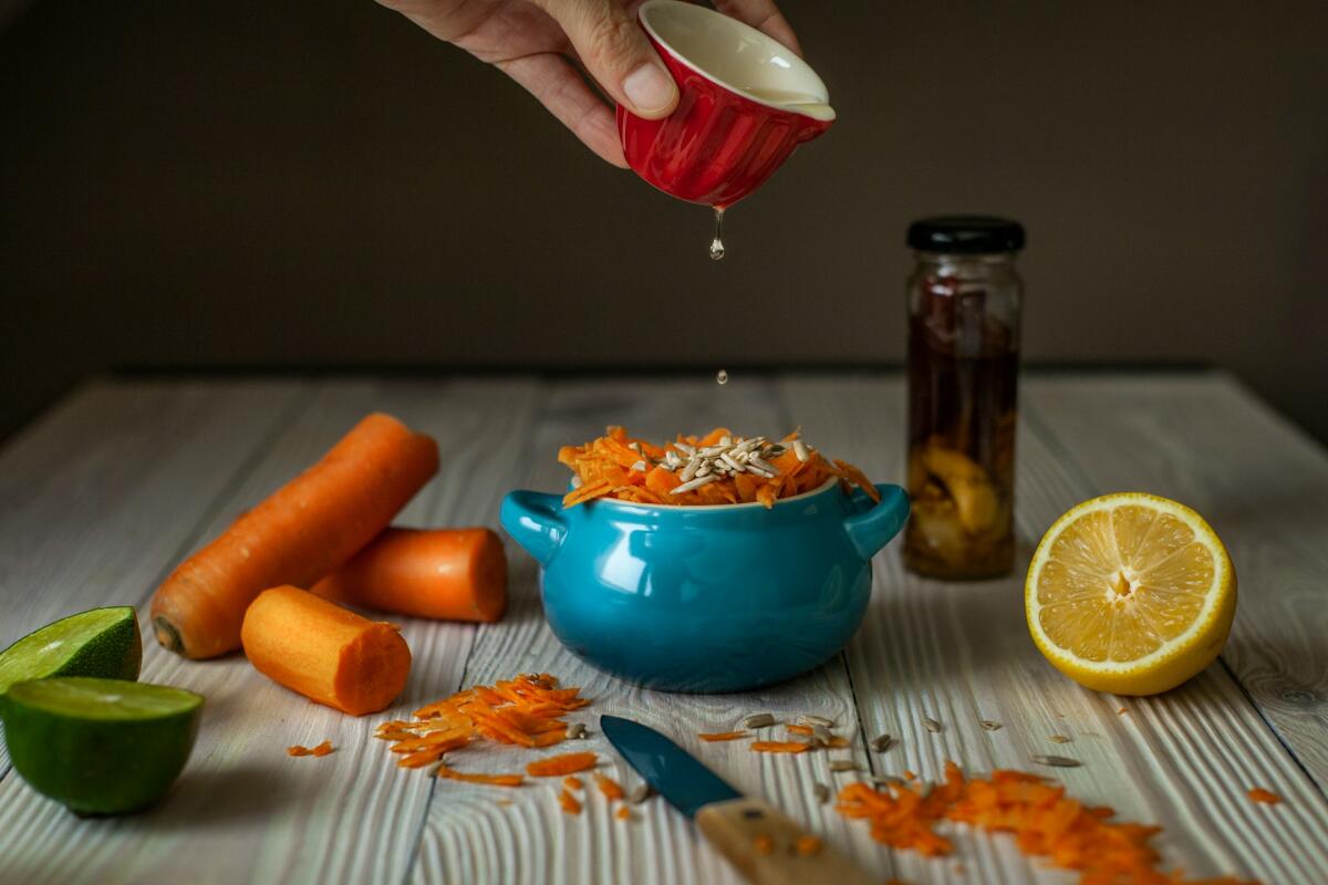 - Добавляют к сливкам с морковью лимонный сок с изюмом, аккуратно перемешивая.