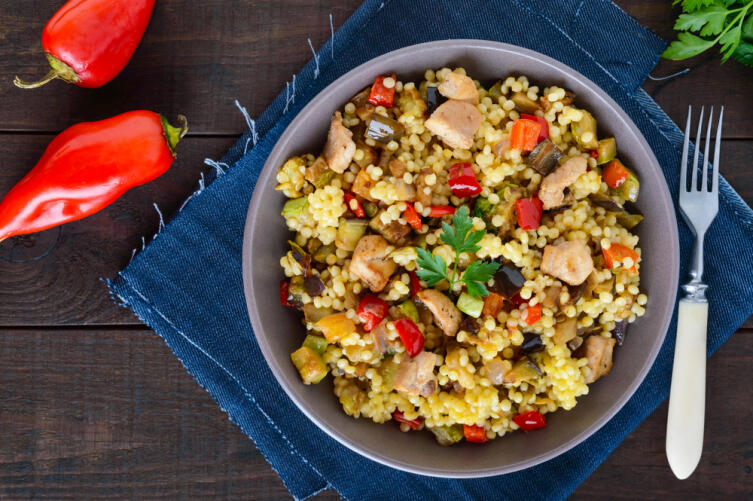 - Разогрейте в кастрюле растительное масло. Отправьте туда же булгур. Воду не добавляйте. Обжаривайте крупу 5 минут.