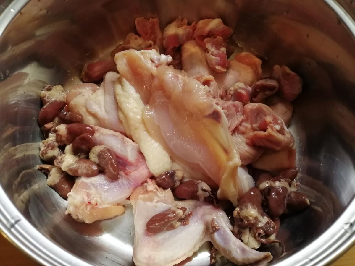 Для бульона нам понадобится куриная грудина с остатками не самым тщательным образом срезанного филе, три-четыре крылышка и… Ну, какой куриный бульон без потрошков? Без них же и вкус совсем не тот! Поэтому к грудине и крылышкам я добавляю граммов двести куриных сердечек и примерно вполовину меньше желудков.