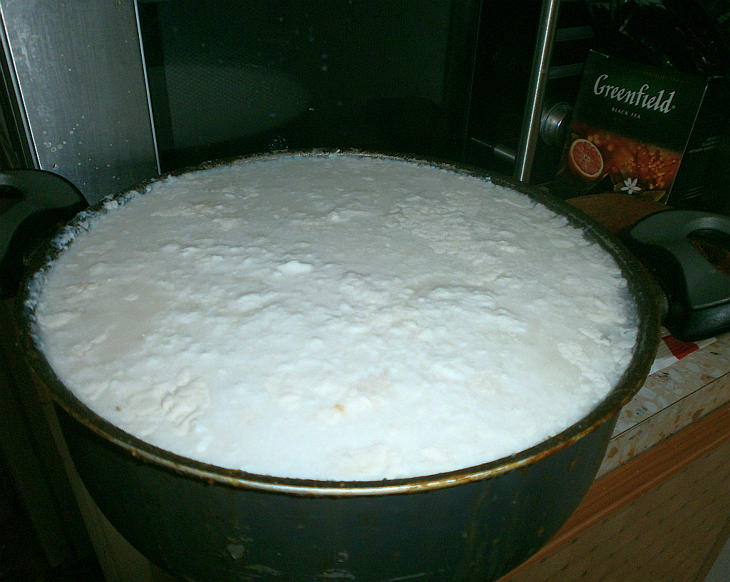 Итак, в отстоянное в естественных условиях при комнатной температуре молоко до состояния простокваши добавляют щепотку (порядка 10 мг на 10 литров молока) «мейто» и тщательно перемешивают.