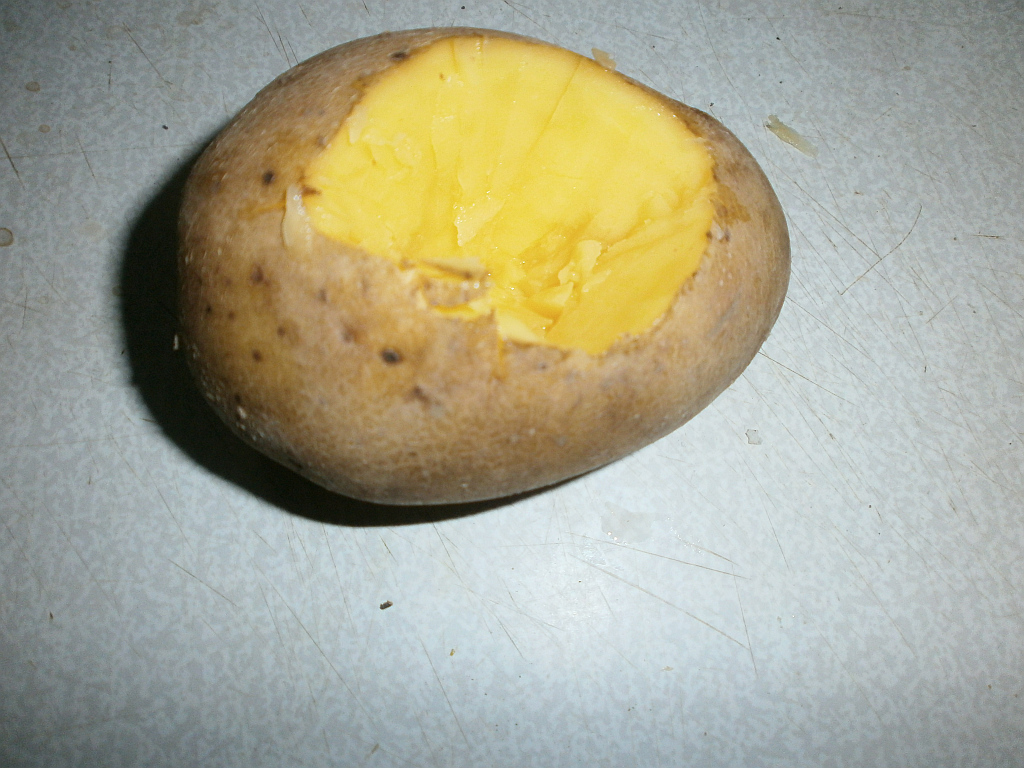В первом случае кусочек сыра помещают в сделанную выемку в отваренном картофельном клубне, во втором — отваренный и затем охлажденный картофель можно сохранить не более суток в холоде (холодильнике) при температуре +2…+4 градуса, а перед подачей к столу вновь разогреть в микроволновой печи. Тогда мягкий плавленый сыр добавляют в выемку клубня перед подачей на стол, а сыр приготовленный натурально — перед разогревом в микроволновой печи.