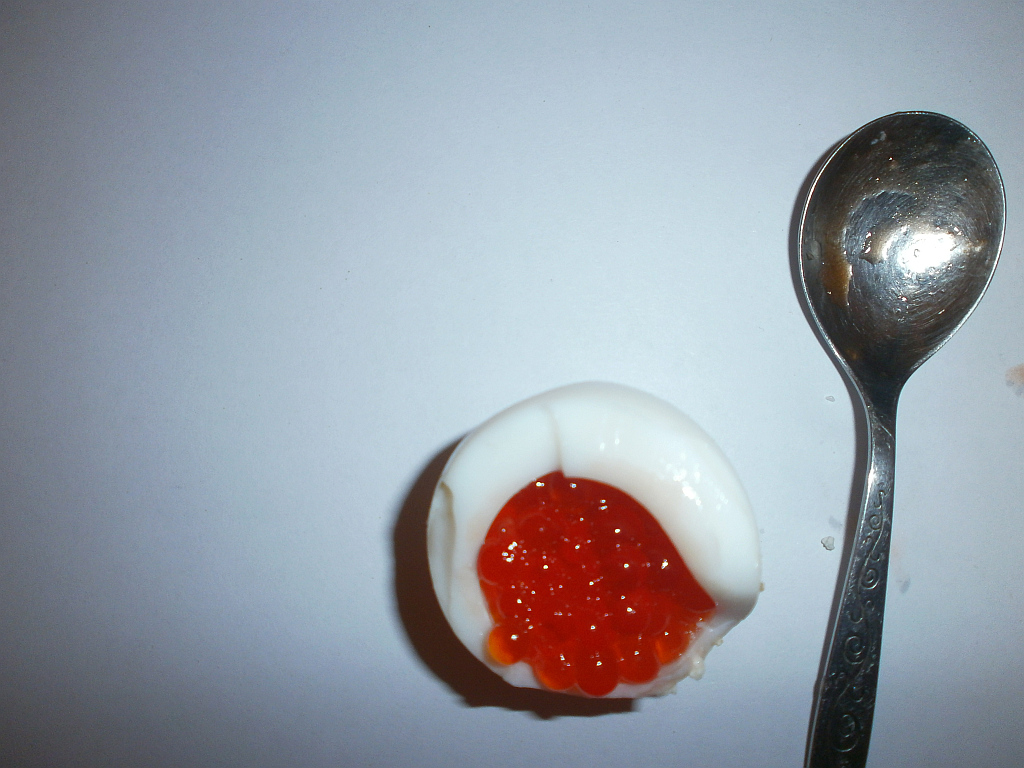 Если в отварное яйцо закладывают «щедрую» столовую ложку красной икры, предварительно удалив желток — получается готовый и оригинальный порционный баттл: насыщенное белковой массой яйцо в сочетании с икрой красной рыбы, также богатой белком.