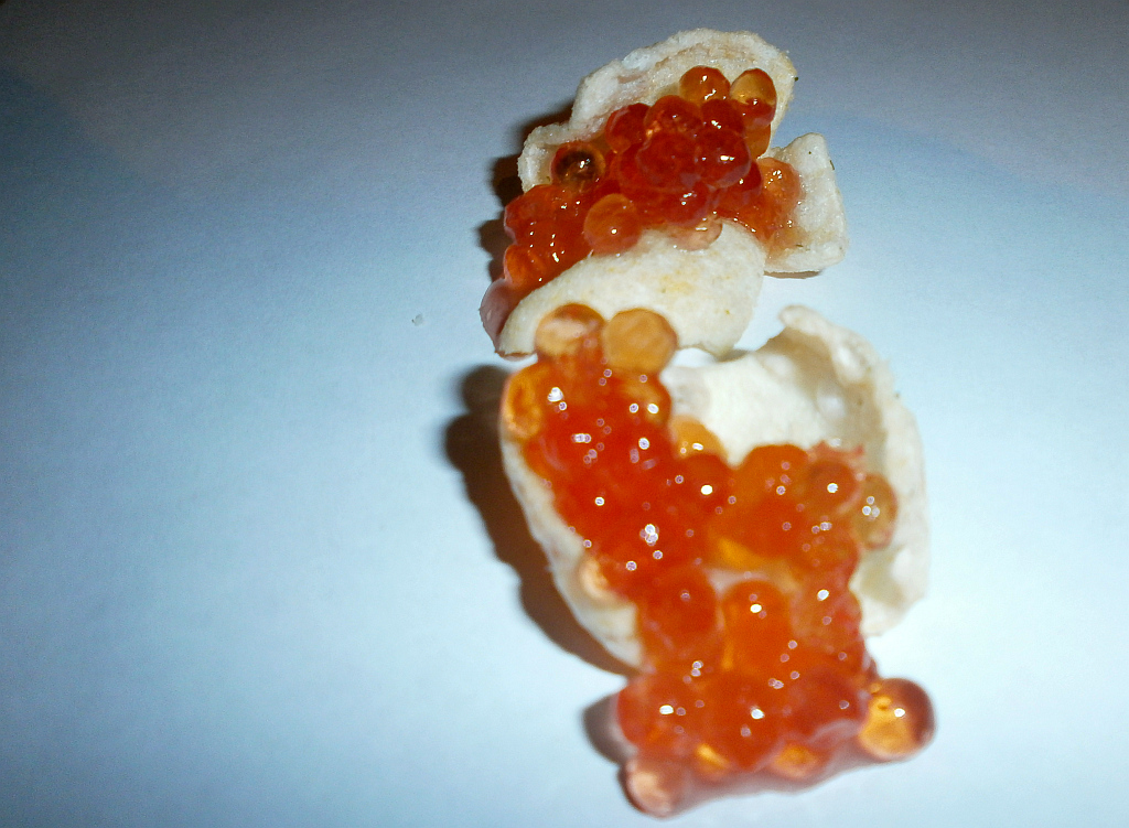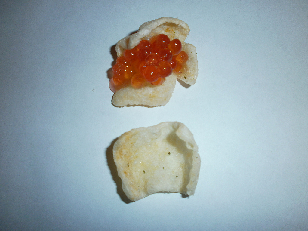 Богатое послевкусие снека вместе с натуральной икрой создает отдельное, новое деликатесное блюдо. Оно значительно отличается от привкуса дешевого рыбного ароматизатора-заменителя. Гости сразу вспомнят, что забыли купить нормальные снеки. Для этого апробированного эксперимента икру добавляют прямо на чипсы и снеки.