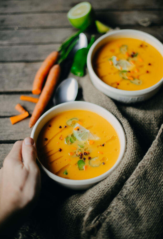 Обжариваем лук, морковь и тёртый имбирь, заливаем овощным бульоном и доводим до мягкости. Всё пробиваем блендером до гладкости и вливаем немного кокосового (разрешается заменить любым другим) молока. Сверху — капля острого соуса и щепотка обжаренных семян. Суп становится шелковым, согревающим, будто сам заботится о вас.