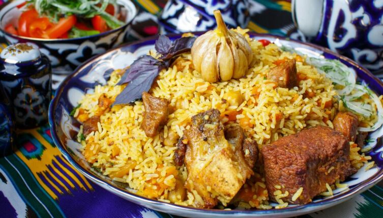 - Плов. Где-то его делают на бараньем жире, где-то — с изюмом и морковью, где-то кладут айву или нут. Но суть одна: рассыпчатый рис, пропитанный ароматами мяса и специй. Плов — не просто еда, а почти ритуал. Его готовят на праздники, в казанах, с медленным жаром и душой.