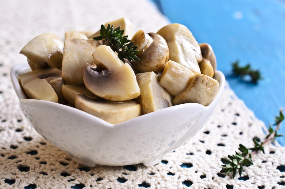 Грибов на 2 салатника для большого стола нужен килограмм. Моем, чистим (громко сказано — обычно чистить ничего не нужно, особенно вешенку) и складываем в эмалированную кастрюлю, стеклянную чашку для СВЧ или чугунную утятницу.