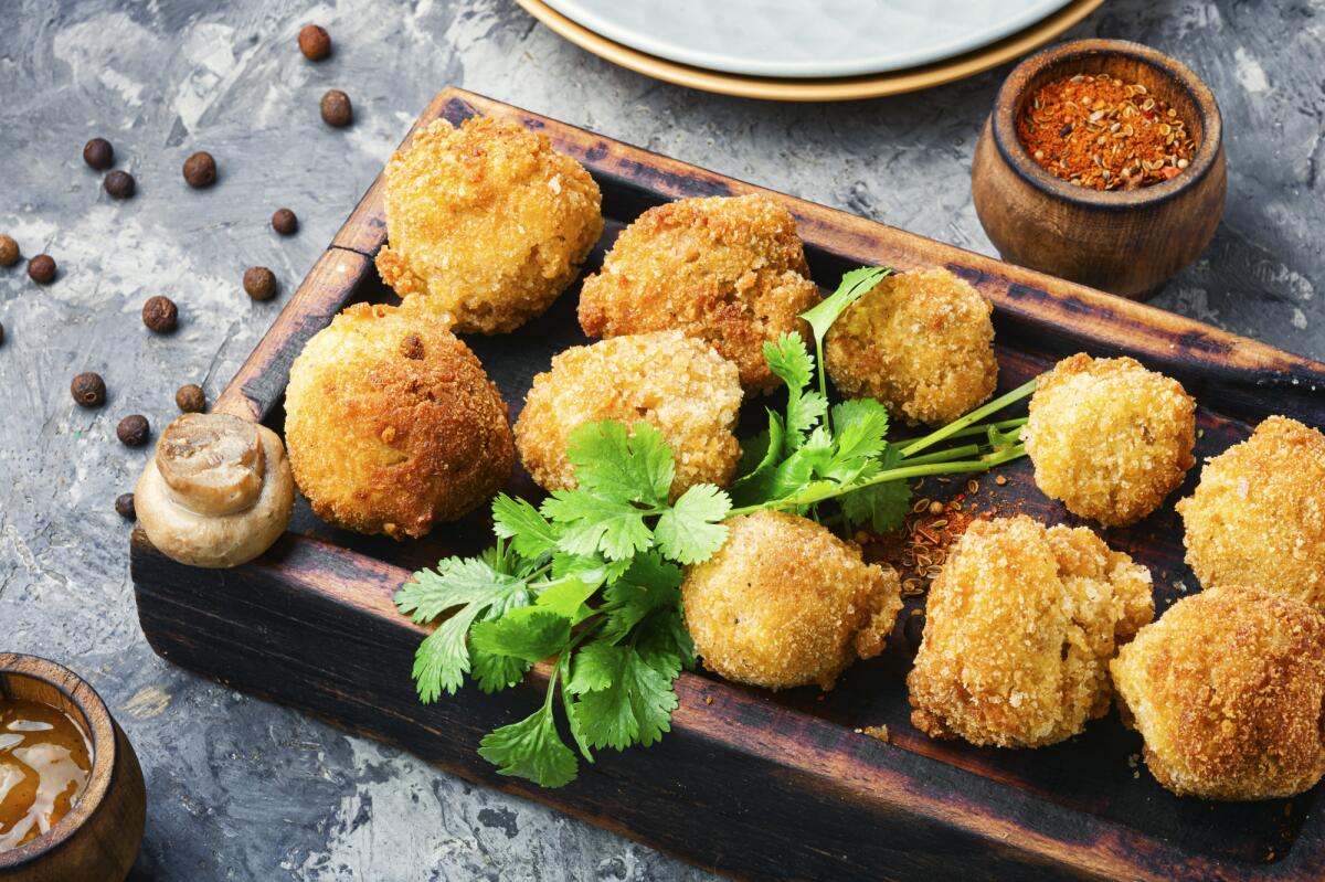 Теперь промаринованные грибы достаем, обмакиваем в кляр и обжариваем в большом количестве растительного масла.
