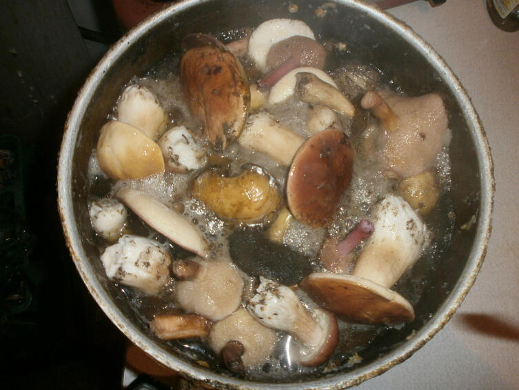 Приготовление свежесобранных грибов в латке для получения «первого» отвара. Андрей Кашкаров, личный архив