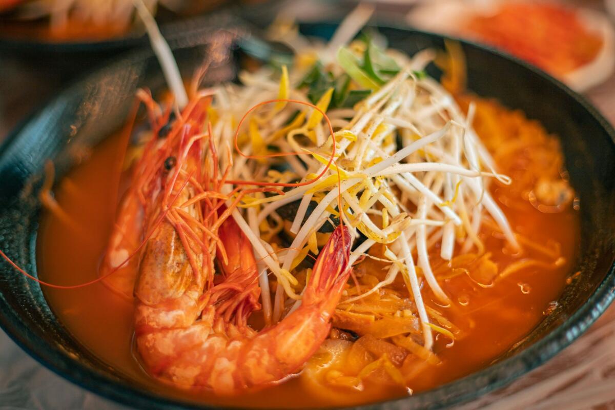Нам понадобятся 2 стакана очищенных креветок, которые отправятся на горячую сковородку. Слегка обжарив, положим 1−2 ст. ложки муки, размешаем, вольем полстакана молока, снова размешаем и подождем образования пузырьков. Когда они появятся, добавим полстакана сухого белого вина или апельсинового (грейпфрутового) сока, лимонную цедру, сушеную шелуху мускатного ореха, соль и перец — по вкусу.