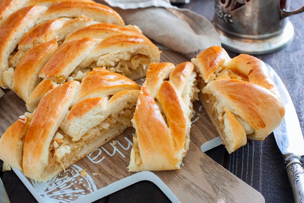 Готовят ее с несколькими начинками сразу. На слой теста кладут обычно менее влажную начинку, например, рис или рассыпчатую кашу, а поверх нее уже более сочный мясной или рыбный фарш.