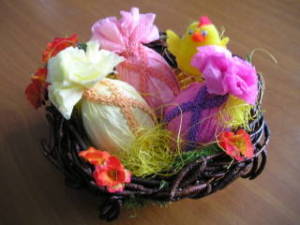 Елена, спасибо. +5. Правда, у меня вчера не было времени, потому в пленку расписную закатала яйца, под хохлому разноцветную. Кстати, еще в советские времена, когда таких затейливостей у нас и в помине не было, наклеивала на крашеные яйца переводные картинки с цветами. Помню, ирисы очччень хорошо смотрелись, в первую минуту народ принимал за роспись тонкую