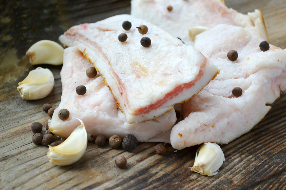 Таким образом солится любое сало: и то, которое без единого мясного волоконца, и то, которое «с прорезью», то есть с полосками мяса.