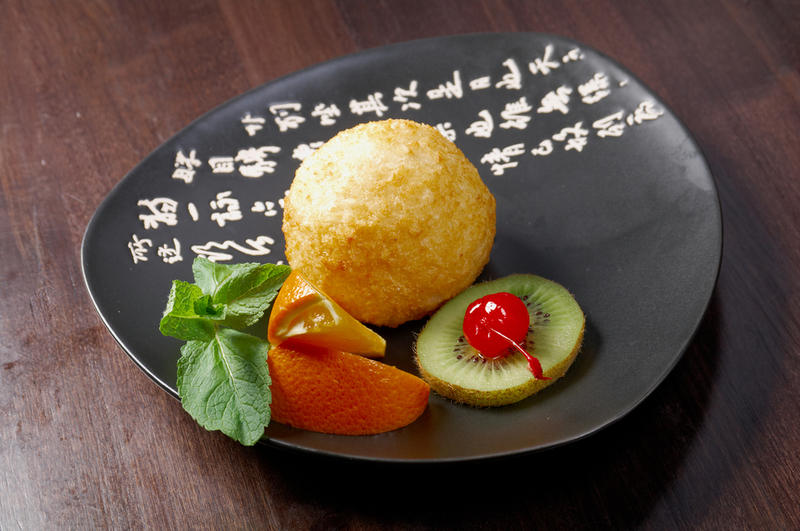 Да-а-а! Обед из области фантастики 70-х: двойная порция прозрачных пельменей... на десерт - жареное мороженое с фруктовой икрой...