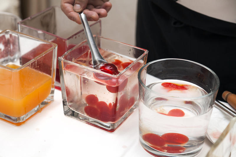 Какие еще секреты молекулярной кухни? Пироги получаются более мягкими, если шприцем впрыснуть в них ром. Проэнзимы свежевыжатого ананасного сока значительно смягчают мясо. Холодное пирожное с горячей начинкой получается с помощью впрыскивания в сухую заготовку сладкого ликера, быстрого замораживания и нагревания готового блюда в СВЧ-печи.
