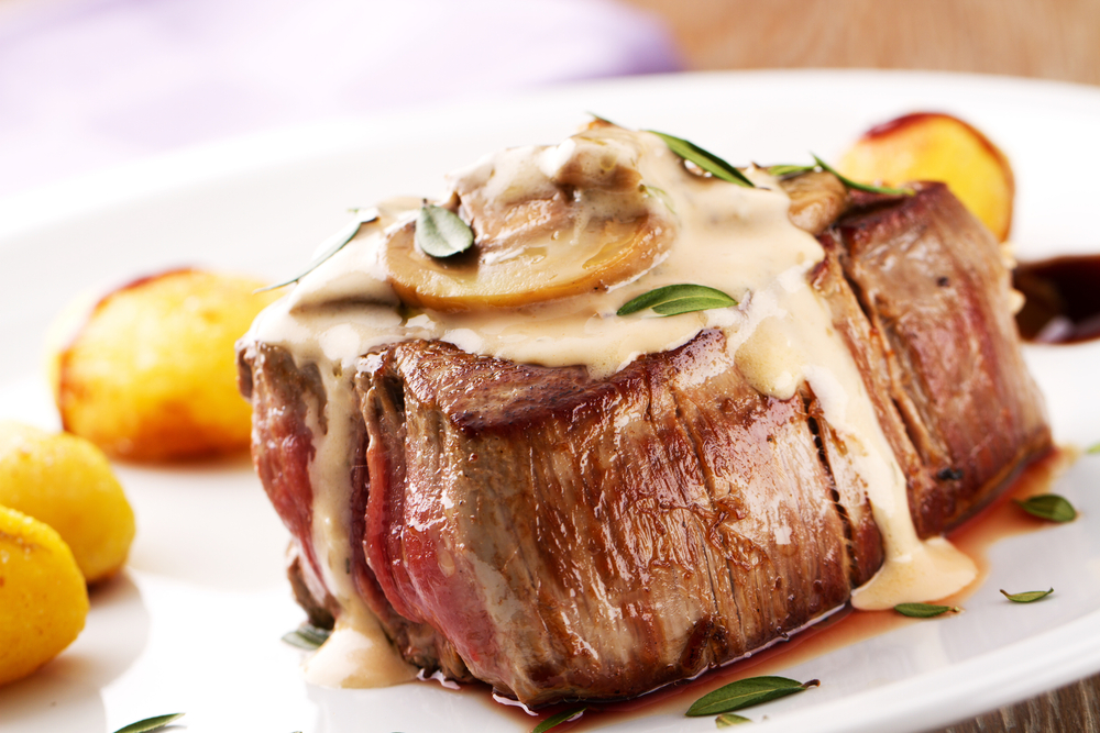 Предлагаю вам этот кулинарный рецепт. Мясо в грибном соусе с мятой.