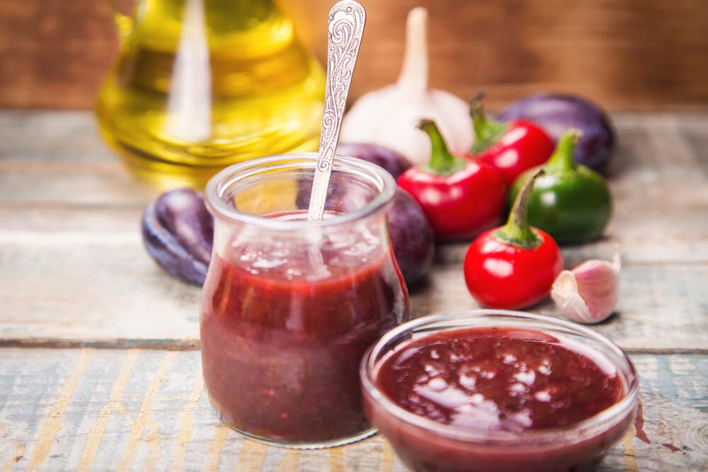 Из не совсем зрелых слив приготовить пюре: плоды вымыть, очистить от косточек и пропустить через мясорубку с густой решёткой. На 1 кг приготовленного пюре положить 200 г сахара, по 2 г молотых корицы и бадьяна, 2 шт. измельчённой гвоздики и 1 г натёртого мускатного ореха. Довести пюре до кипения и горячим разлить по банкам. Заполненные доверху банки укупорить герметически и поставить крышками вниз для воздушного охлаждения.