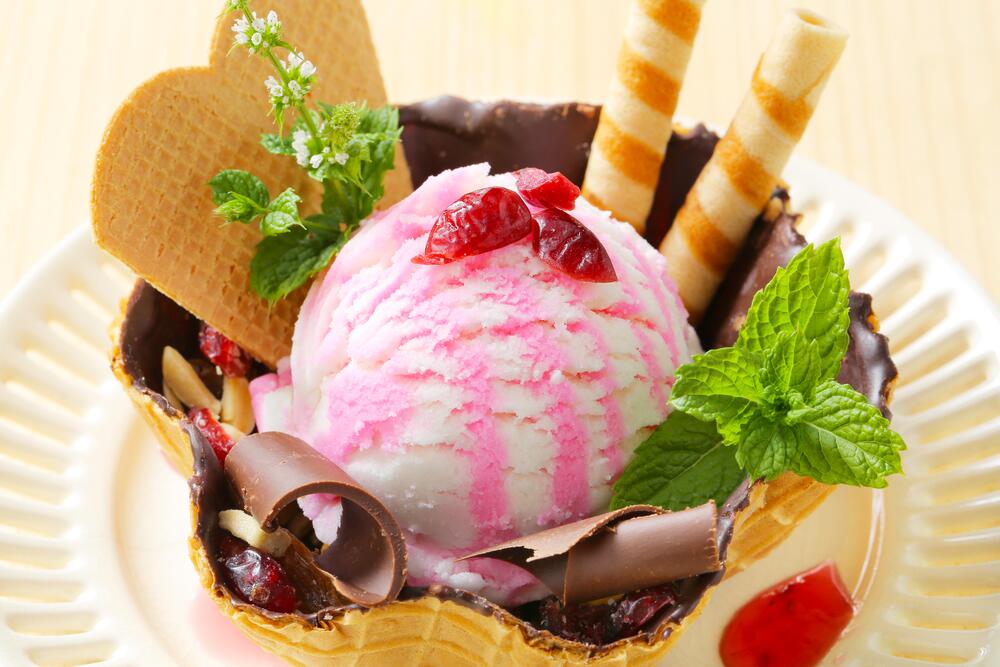 Для того чтобы придать этому десерту красивый, привлекательный вид, улучшить вкусовые качества, его подают с различными добавками: печеньем, шоколадом, сиропом, вином, вареньем, консервированными фруктами, ягодами, орехами. Мороженое отпускают в креманках, фужерах или специальных вазочках.