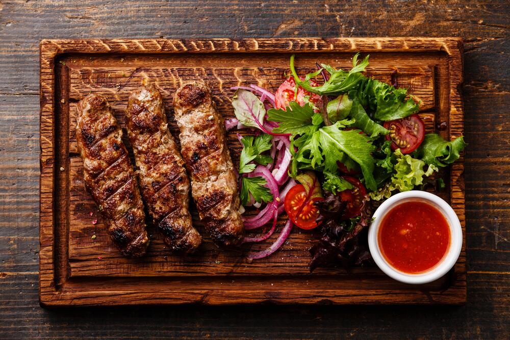 Восточное блюдо люля-кебаб сродни одновременно колбасе, котлете и шашлыку. Для его приготовления тонкий прутик или шампур облепляют мясным фаршем так, чтоб получилась «колбаска» с палочкой внутри, а затем жарят на открытом огне. Сатэй — это тоже вид говяжьего шашлыка, только родом из тайской кухни. Стейк — это отбитый и обжаренный кусок мяса из вырезки.