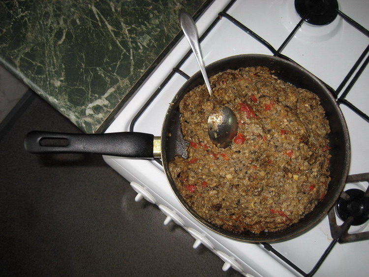 Да-да, завтрак. Конечно, никто не запрещает есть грибную икру и в качестве горячего второго блюда. Например, на ужин. Но лучше, как она подостынет, переложить её в стеклянную банку, закрыть крышкой и — в холодильничек. А утром — заварил чайку, отрезал кусок серого хлеба, намазал его маслом, поверх которого — грибной икорки.