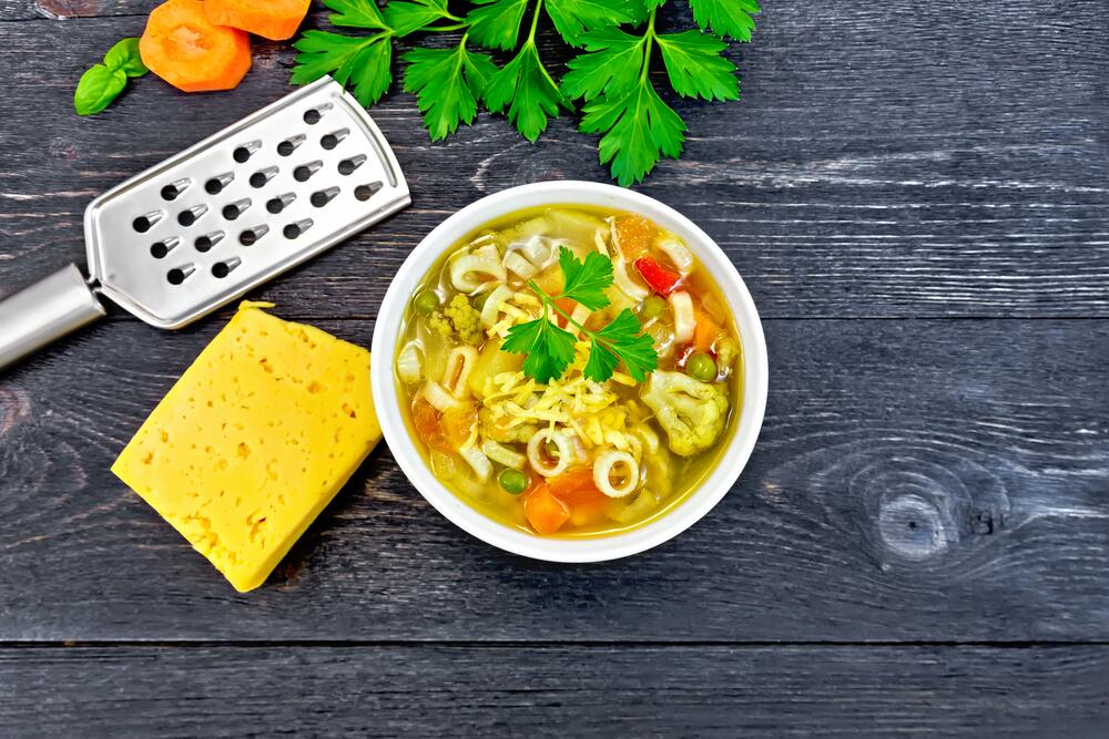 Куриный суп с томатами и сыром